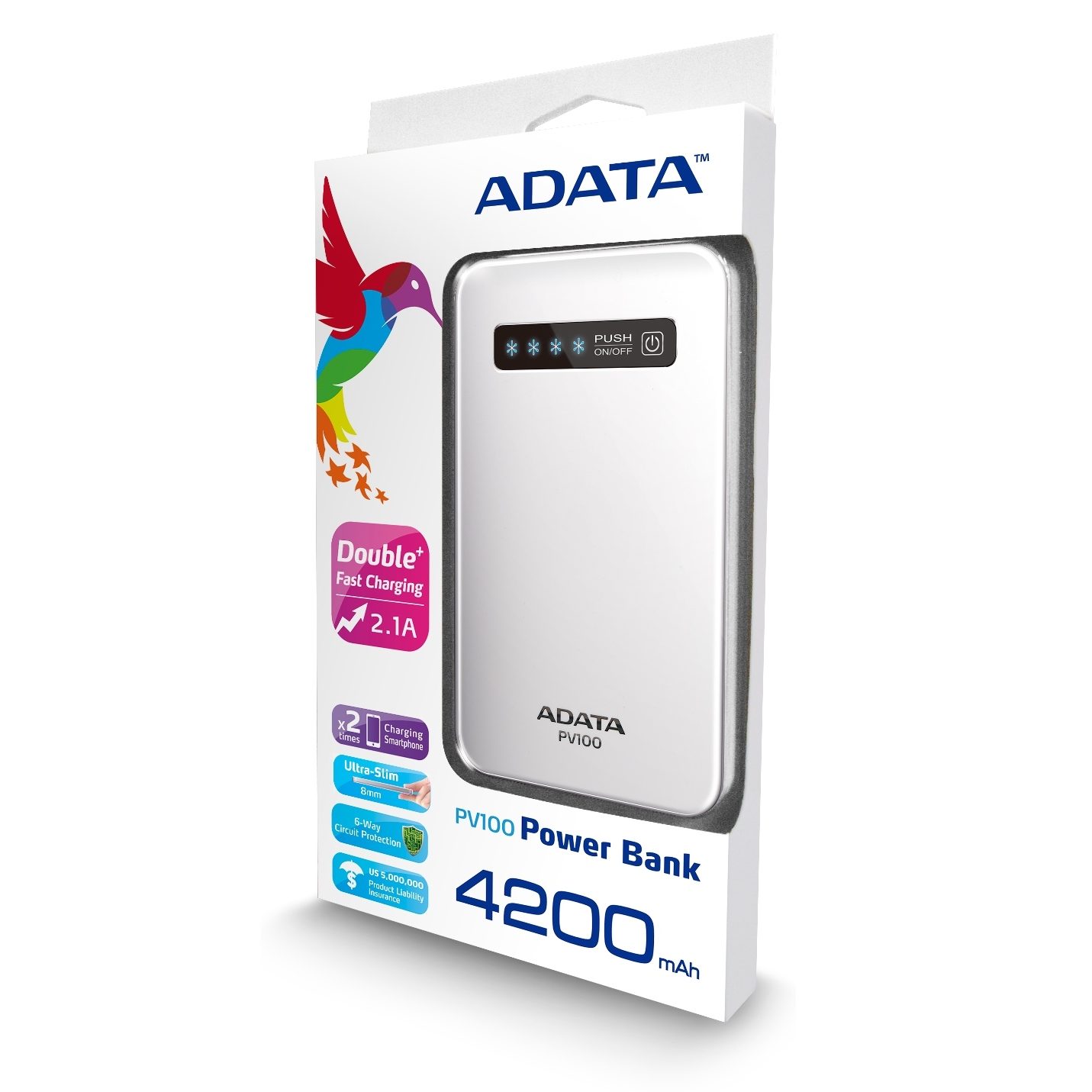 ADATA PV100, Blanc, Plastique, Caméra Numérique, Lecteur e-book, GPS, Téléphone portable, MP3, MP4, PDA, Consoles portables, Tablet, Statut, Micro-USB, Lithium Polymère (LiPo)