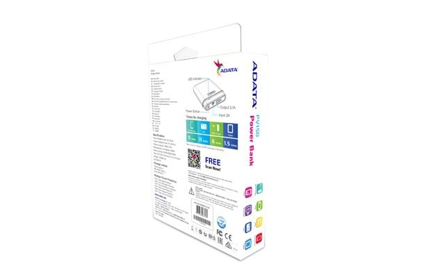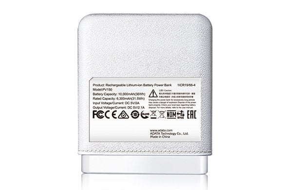 ADATA PV150, Blanc, Universel, Micro-USB, Lithium-Ion (Li-Ion), 10000 mAh, USB