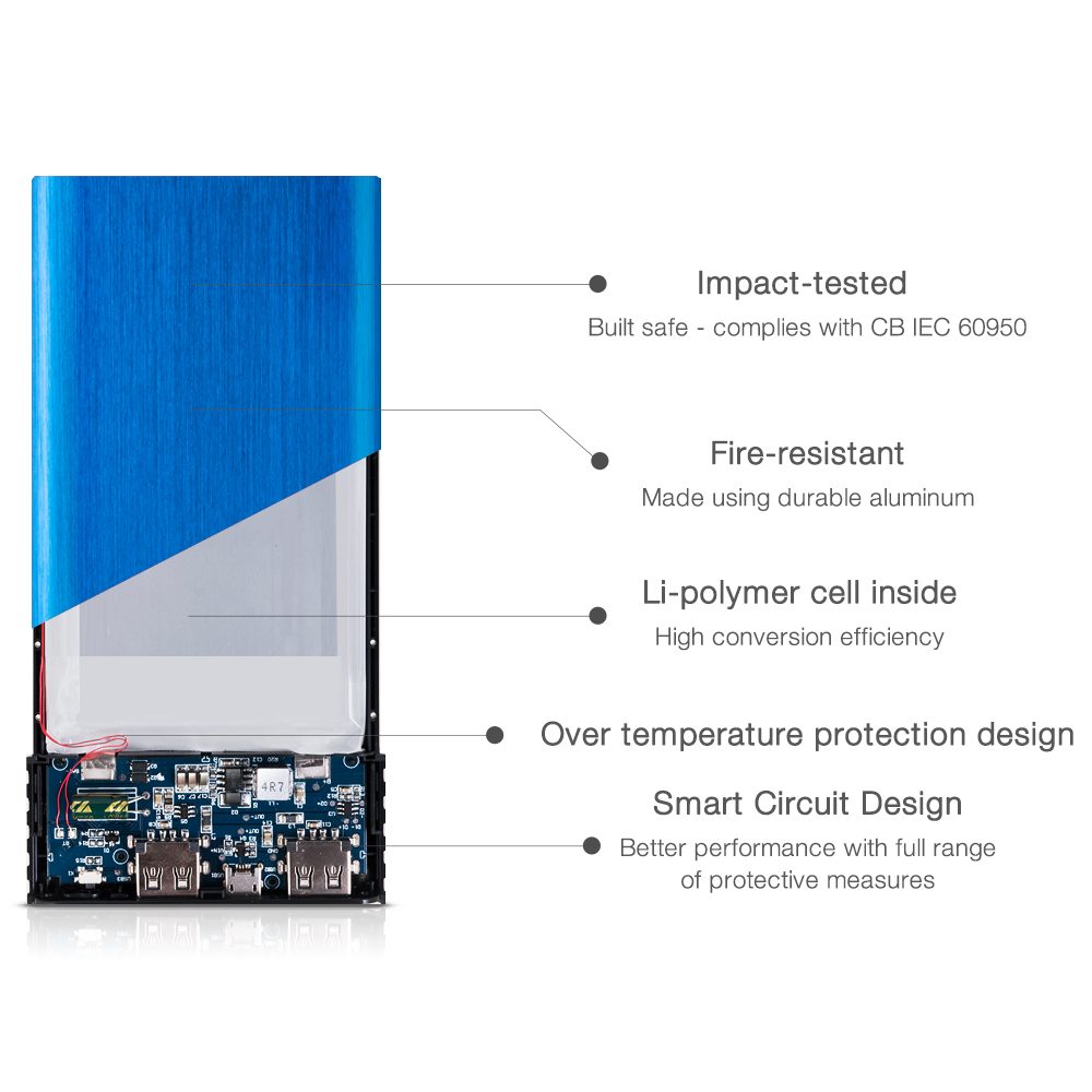 | Autres | Nombre d'appareils connectés simultanément (max): 2, Couleur: Noir, Bleu, Matériau du boîtier/corps: Plastique, Bouton marche/arrêt intégré: Oui, Ports de sortie USB A: 2, Ports de sortie USB B: Micro-USB, Technologie batterie: Lithium Polymère (LiPo), Source de chargement: USB, Tension d'entrée: 5 V, Courant d'entrée: 2 A, Courant de sortie: 2,4 A, Dispositifs de protection électrique: Sur-courant, Surtension, Surcharge, Surcharge, Surchauffe, Court-circuit, Conformité RoHS: Oui, Largeur du colis: 94 mm, Profondeur du colis: 199,8 mm, Hauteur du colis: 22 mm, Poids du paquet: 225 g, Câbles inclus: Micro-USB, Manuel d'utilisation: Oui |