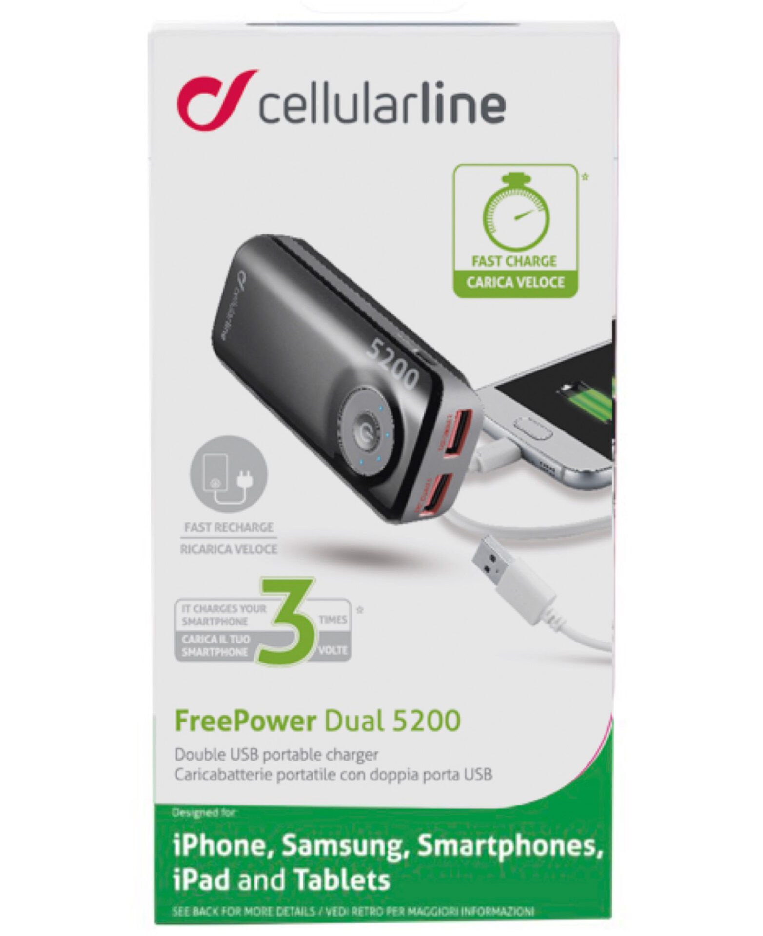 Cellularline 37124, Noir, Universel, Micro-USB, Lithium, 5200 mAh, USB