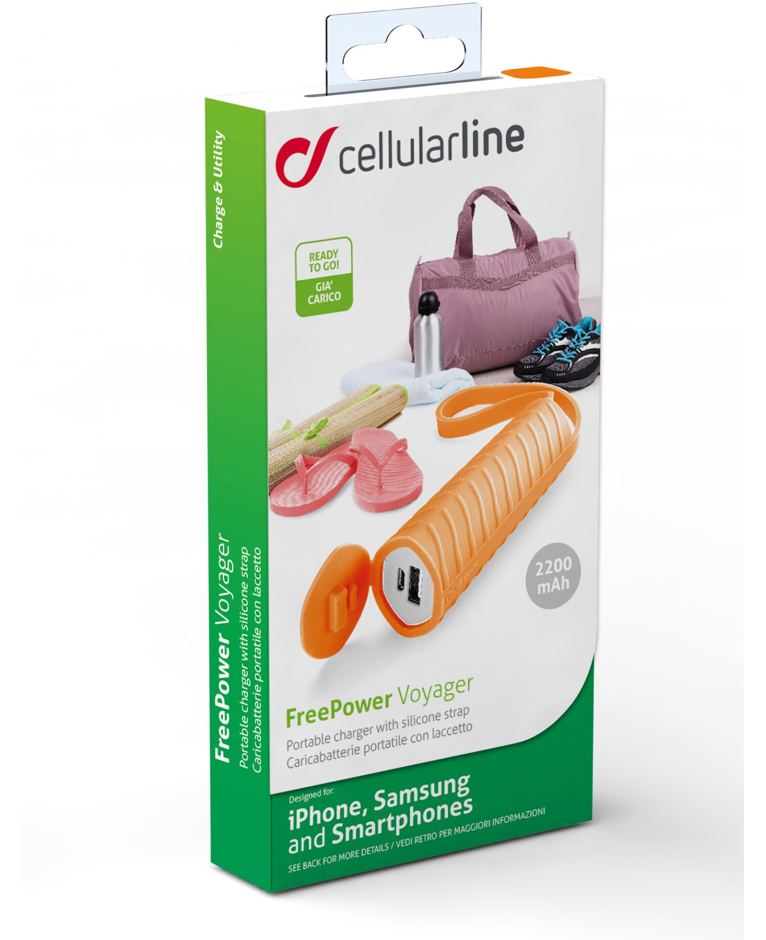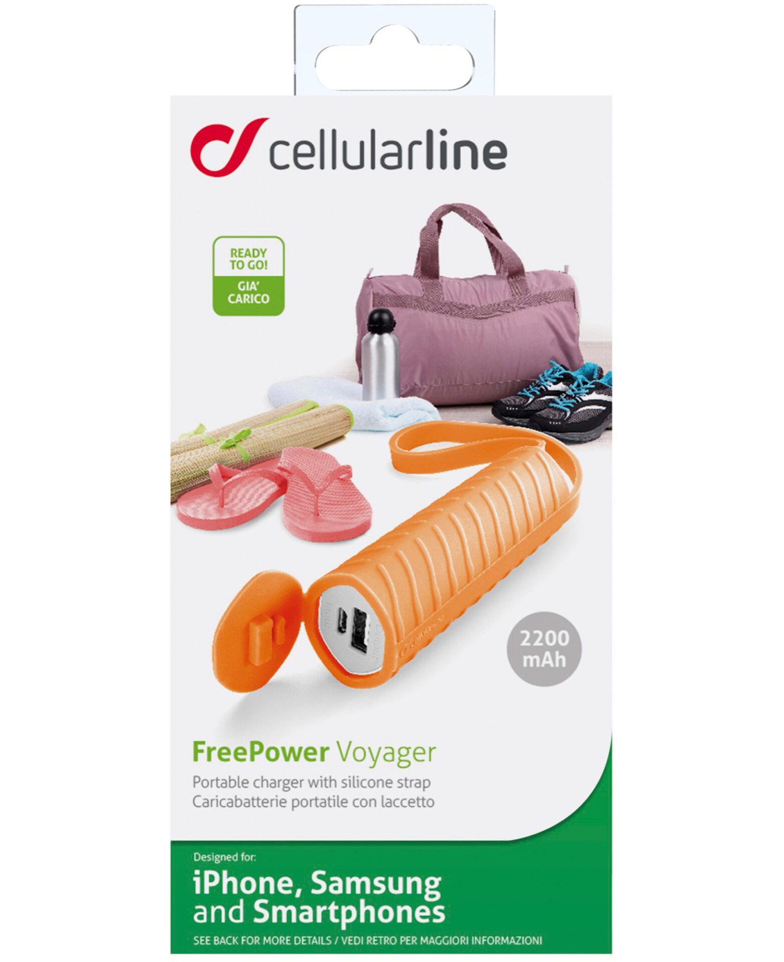 Cellularline FREEP2200VOYAGO, Orange, Silicone, Universel, Micro-USB, Lithium, 2200 mAh