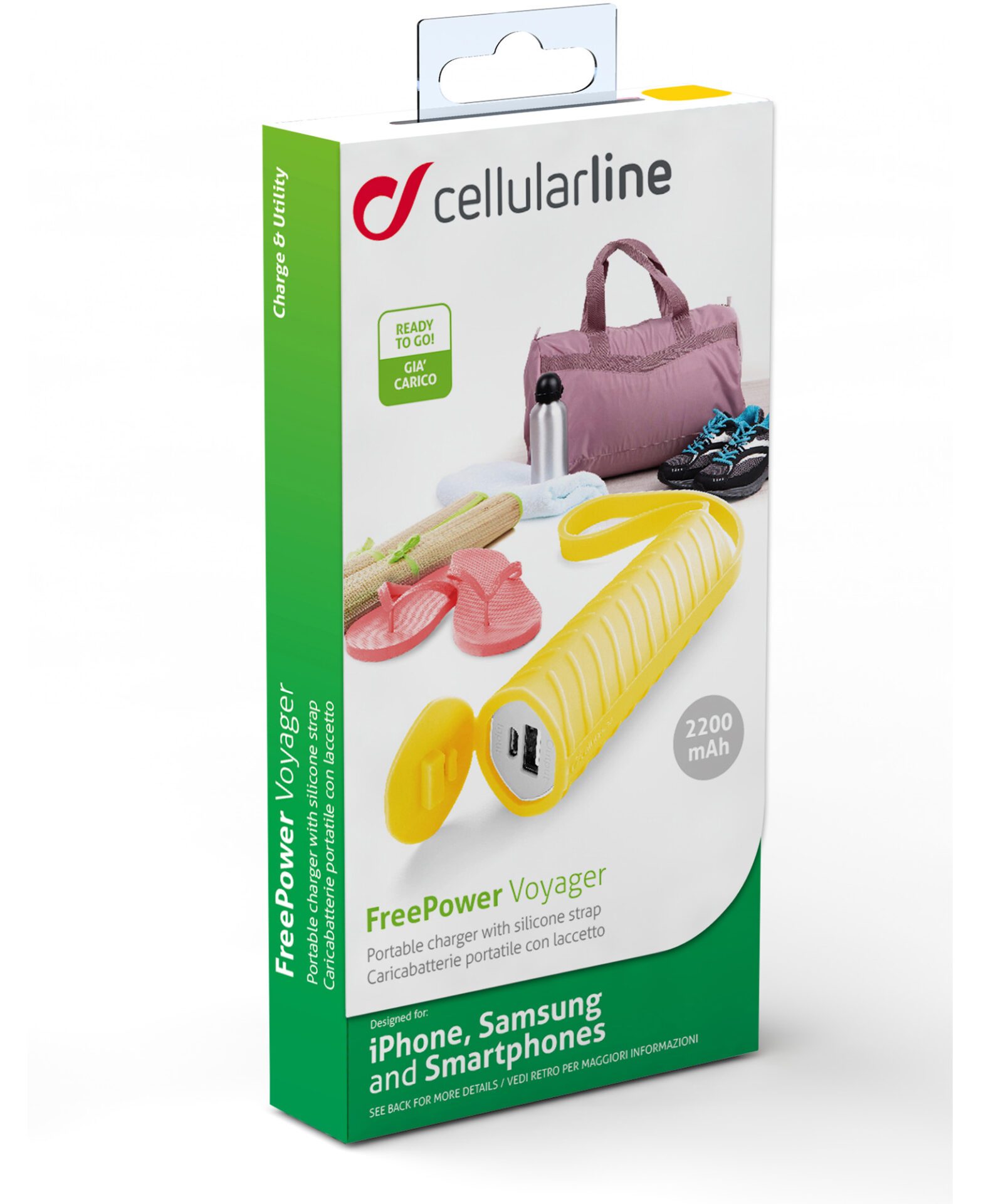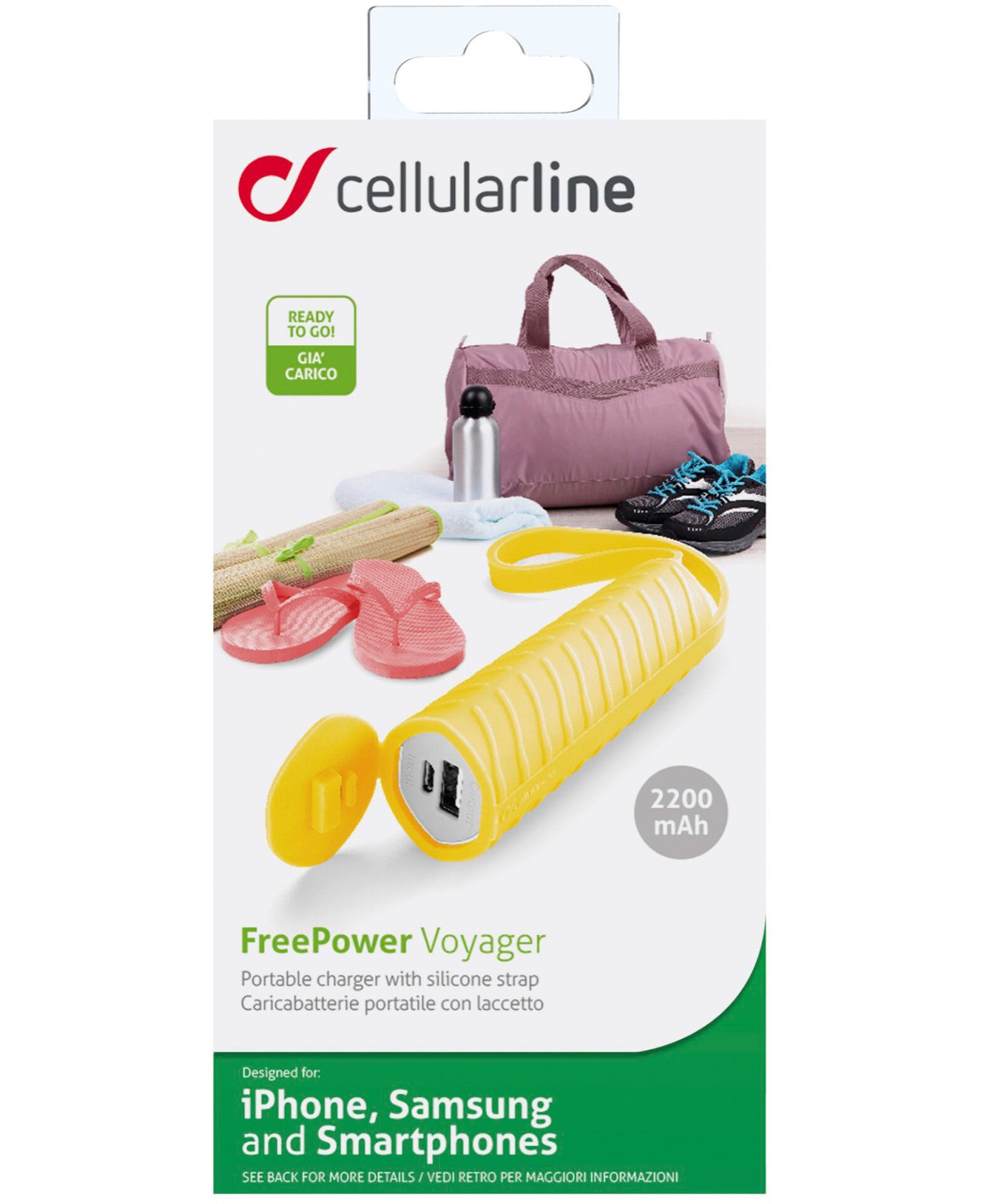 Cellularline FREEP2200VOYAGY, Jaune, Silicone, Mobile/smartphone, Tablette, MP3/MP4, GPS, Lecteur e-book, Micro-USB, Lithium, 2200 mAh