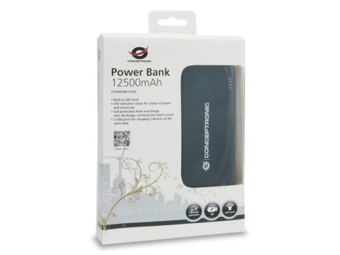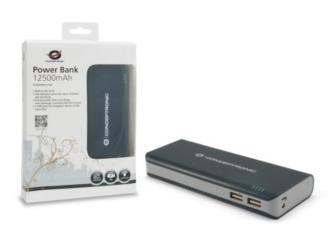 Conceptronic CPOWERBK12500, Noir, Gris, Smartphone, Tablette, Micro-USB, Lithium-Ion (Li-Ion), 12500 mAh, USB