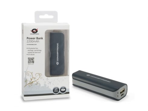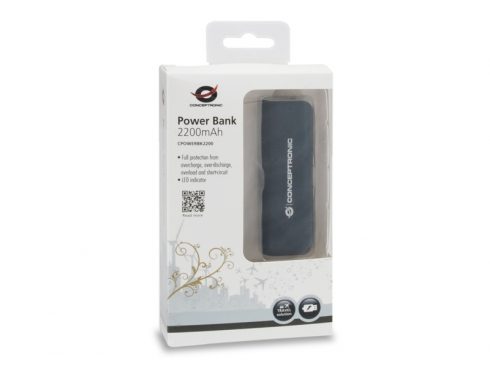 Conceptronic CPOWERBK2200, Noir, Gris, Smartphone, Tablette, Micro-USB, Lithium-Ion (Li-Ion), 2200 mAh, USB