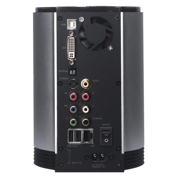 Ce disque dur multimédia au design original sait lire les fichiers vidéo en haute définition. Sa connectique très complète inclut un port Ethernet, pour se relier à son PC via un routeur, et deux ports USB, auxquels on peut brancher différents supports de stockage.