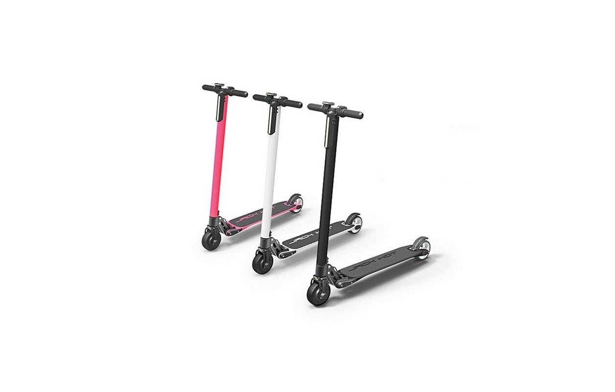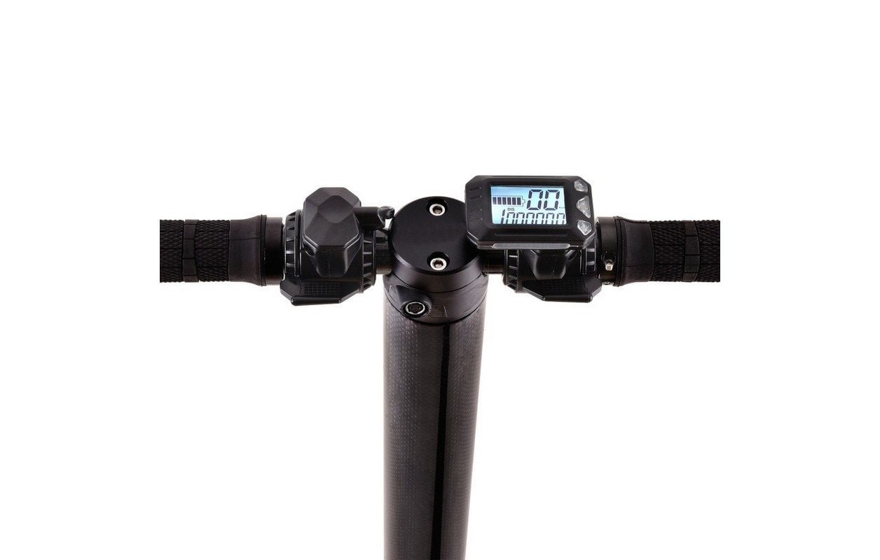 L’EVO Spirit City Carbon est une trottinette électrique dont la conception en carbone présente l’énorme avantage de la rendre légère. Elle ne pèse en effet que 6,3 kg alors que les produits concurrents pèsent plutôt aux alentours de 12 kg. Sa batterie est intégrée dans le tube qui mène au guidon. Son moteur de 350 W est logé dans la roue avant. L’autonomie annoncée est de 20 km et la vitesse de pointe de 25 km/h.