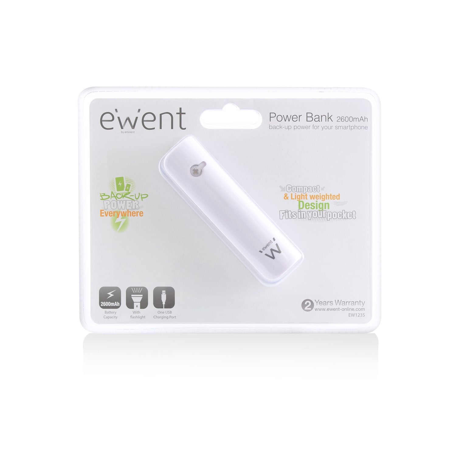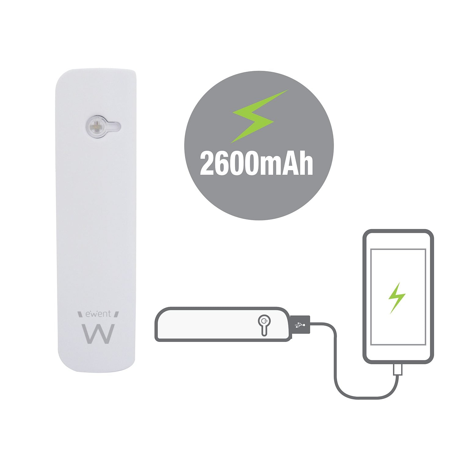 Ewent EW1235, Blanc, Universel, Micro-USB, 2600 mAh, USB, 5 V