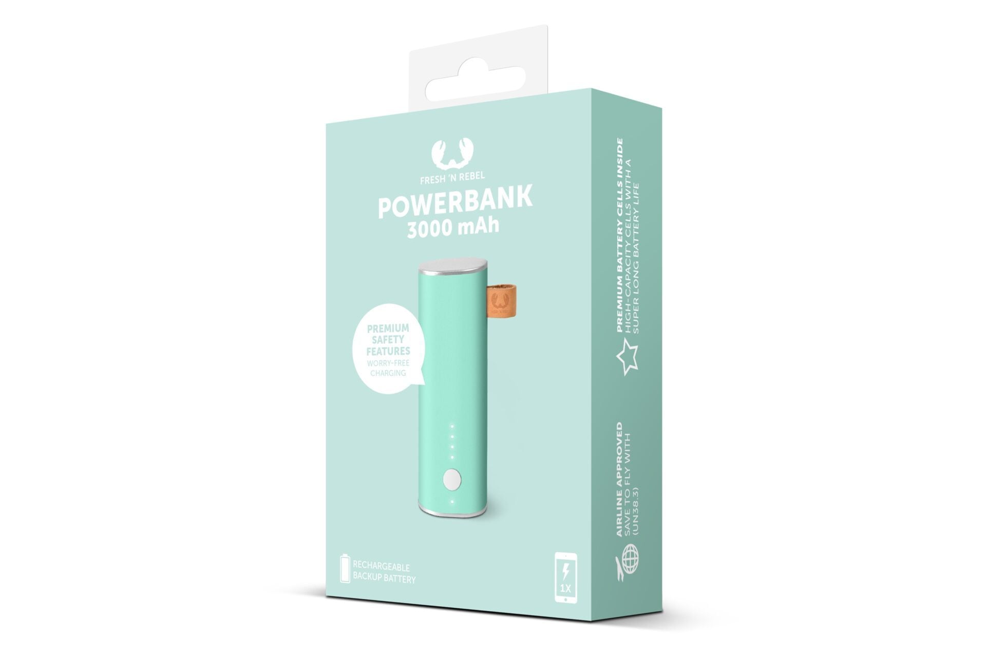 Fresh 'n Rebel Powerbank 3000 mAh - Peppermint, turquoise, Téléphone portable, Smartphone, téléphone, Énergie, 3000 mAh, USB, 1,5 h