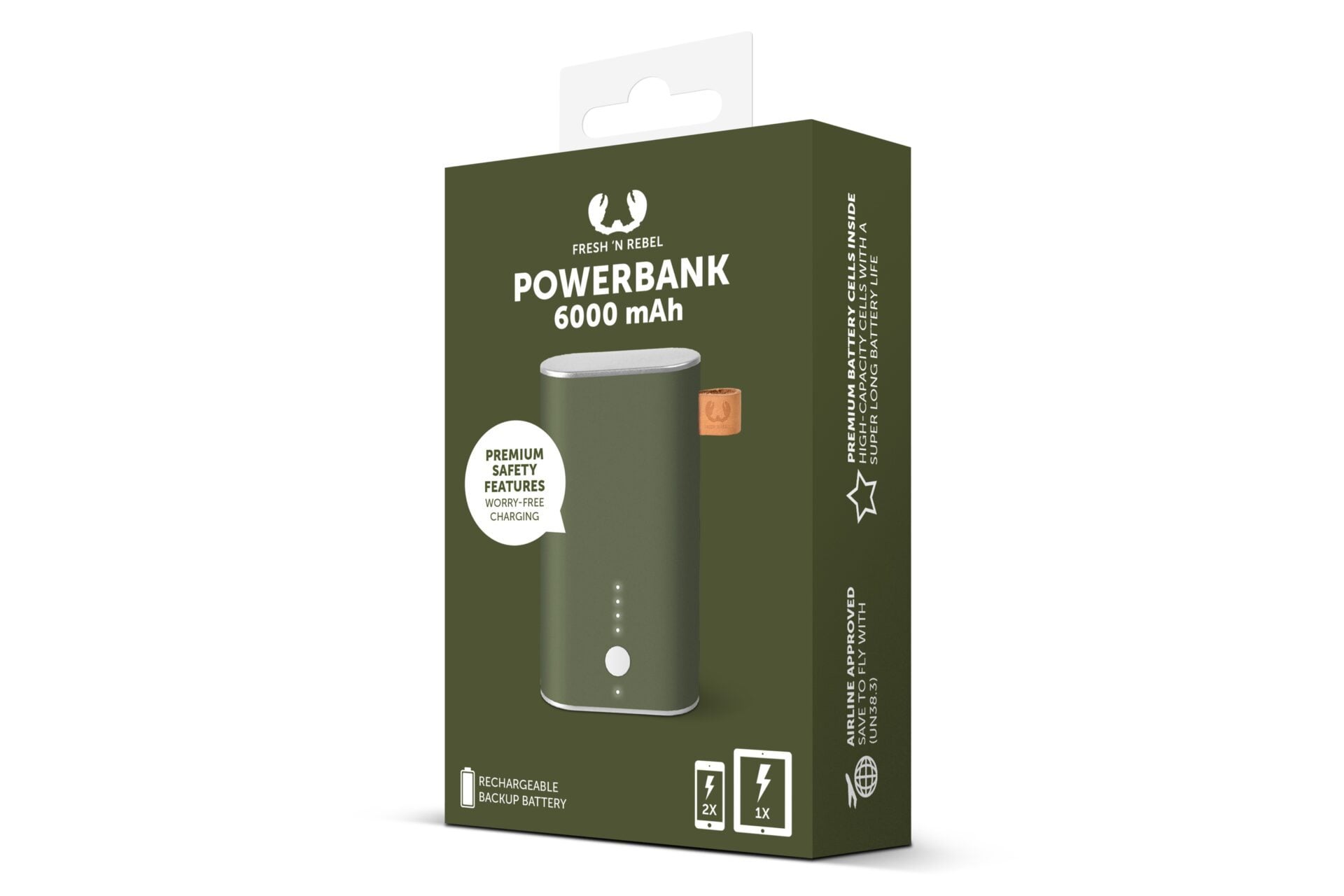 Fresh 'n Rebel Powerbank 6000 mAh - Army, Vert, Téléphone portable, Smartphone, Tablette, téléphone, Énergie, 6000 mAh, USB, 3 h