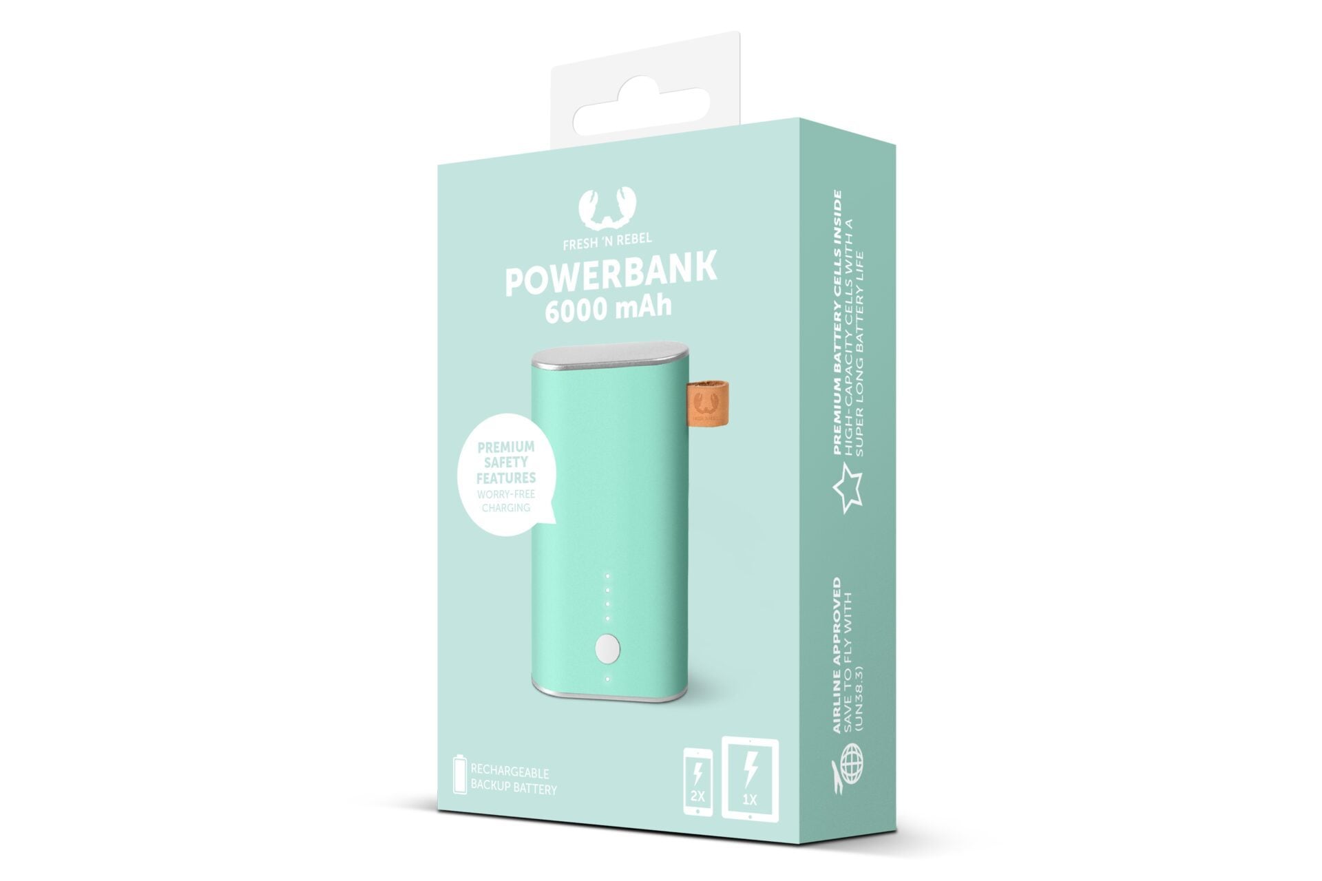 Fresh 'n Rebel Powerbank 6000 mAh - Peppermint, turquoise, Téléphone portable, Smartphone, Tablette, téléphone, Énergie, 6000 mAh, USB, 3 h