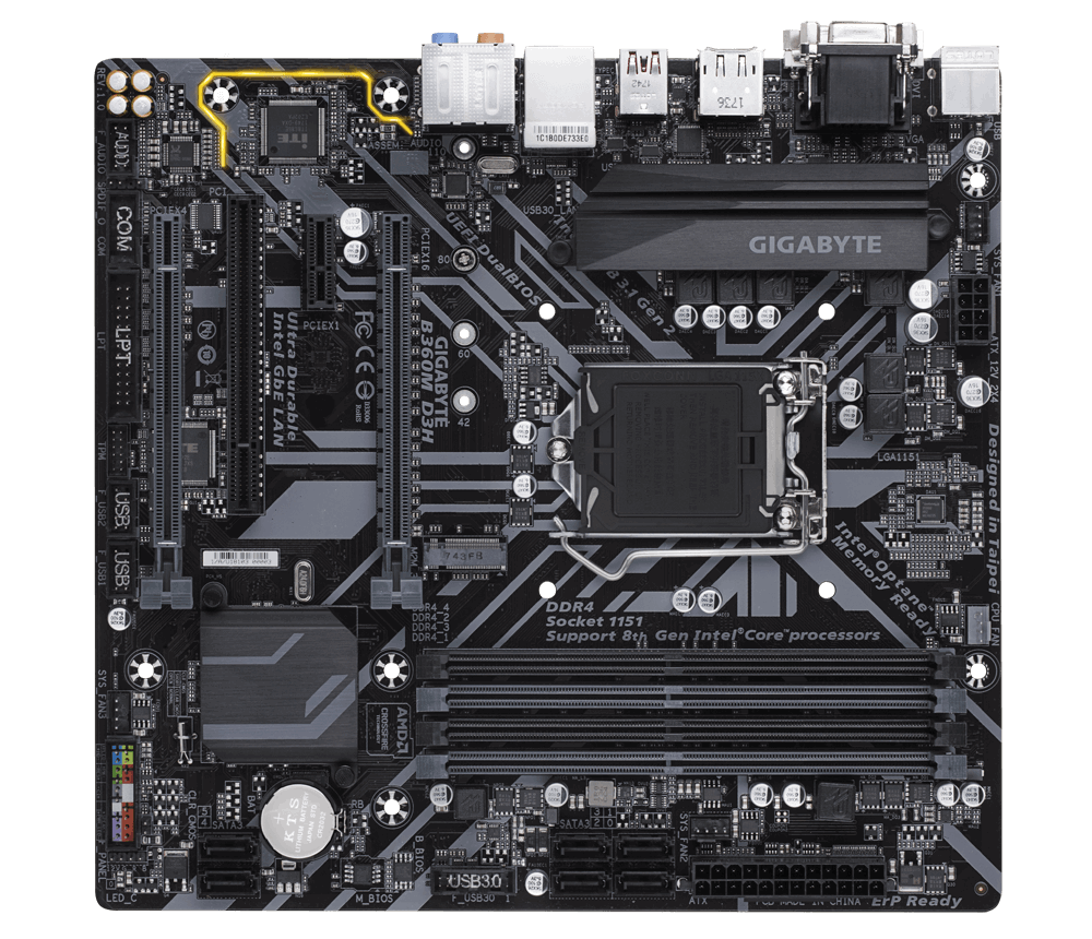 Gigabyte B360M D3H, DDR4-SDRAM, DIMM, 2133,2400,2666 MHz, Dual, 16GB, 64 Go