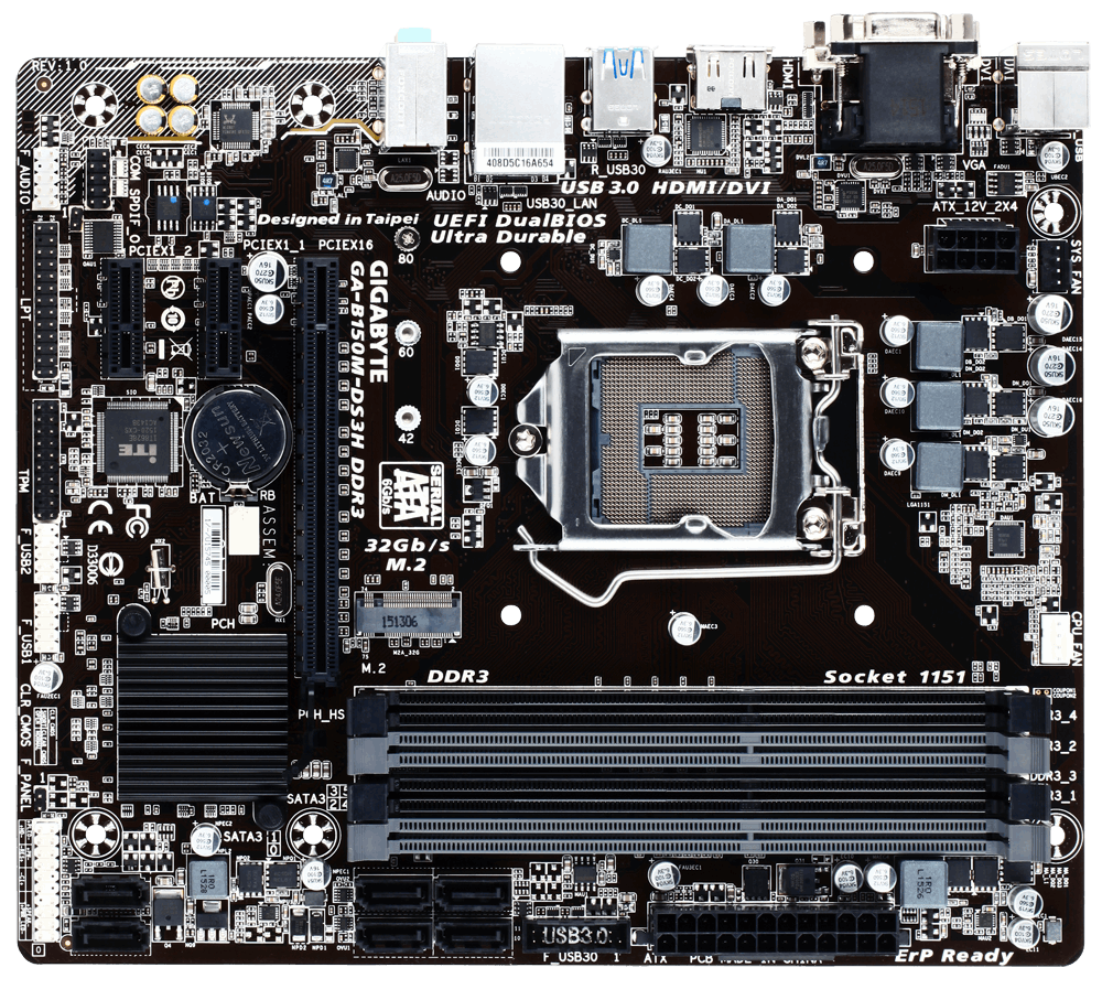 Gigabyte GA-B150M-DS3H DDR3, DDR3-SDRAM,DDR3L-SDRAM, DIMM, 1333,1600,1866 MHz, Dual, 1.35,1.5 V, 16 Go