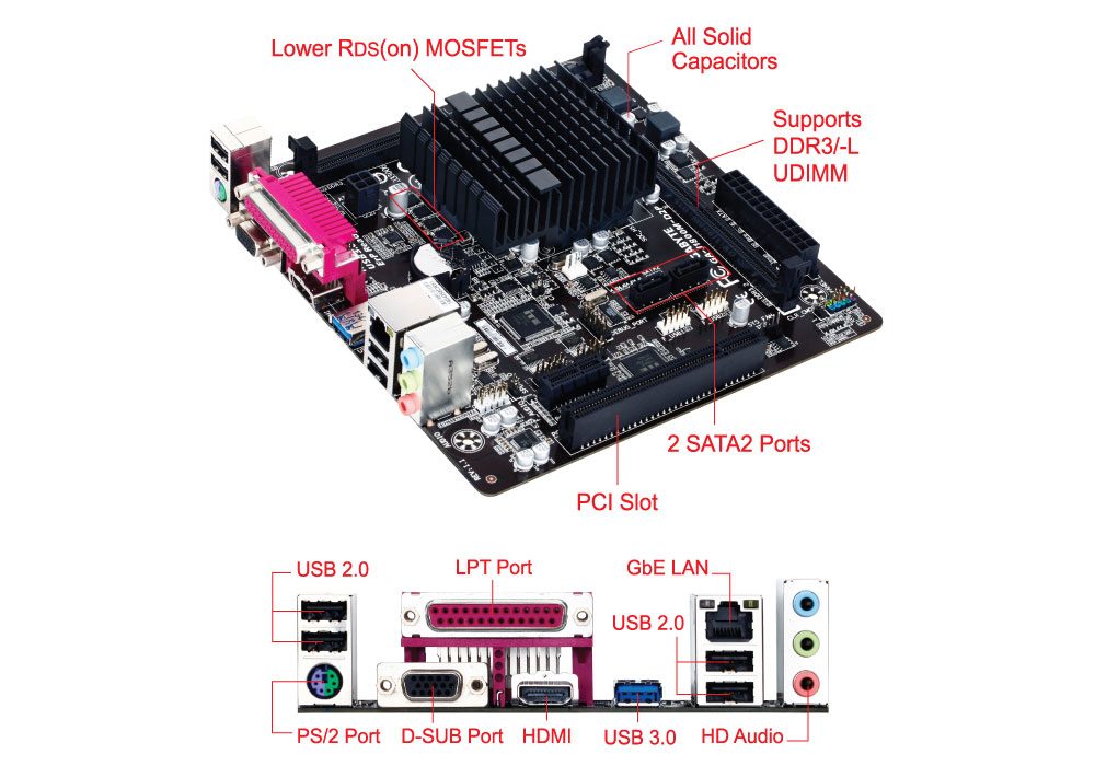 Gigabyte GA-J1800M-D2P (rev. 1.1), DDR3-SDRAM,DDR3L-SDRAM, DIMM, 1333 MHz, Dual, 8 Go, Intel