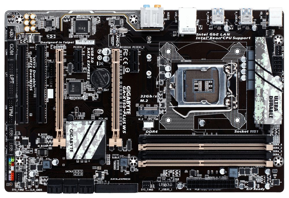 Gigabyte GA-X150-PLUS WS, DDR4-SDRAM, DIMM, 2133 MHz, Dual, Intel, Celeron,Core i3,Pentium,Xeon