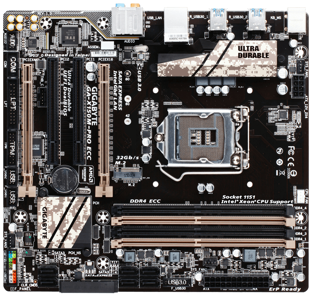Gigabyte GA-X150M-PRO ECC, DDR4-SDRAM, DIMM, 2133 MHz, Dual, 1GB,2GB,4GB,8GB,16GB,32GB,64GB, Intel