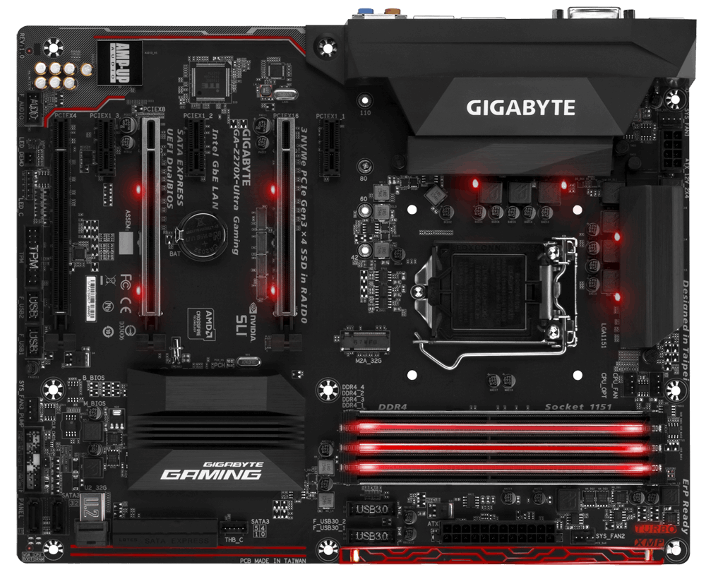 Gigabyte GA-Z270X-Ultra Gaming, DDR4-SDRAM, DIMM, 2133,2400,2666,2800,3000,3200,3300,3333,3400,3466,3600,3666,3733,3800,3866 MHz, Dual, 16GB, 64 Go