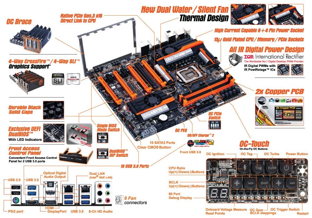 Gigabyte GA-Z87X-OC Force, DDR3-SDRAM, DIMM, 1333,1600,3000 MHz, Dual, 1.5 V, 32 Go