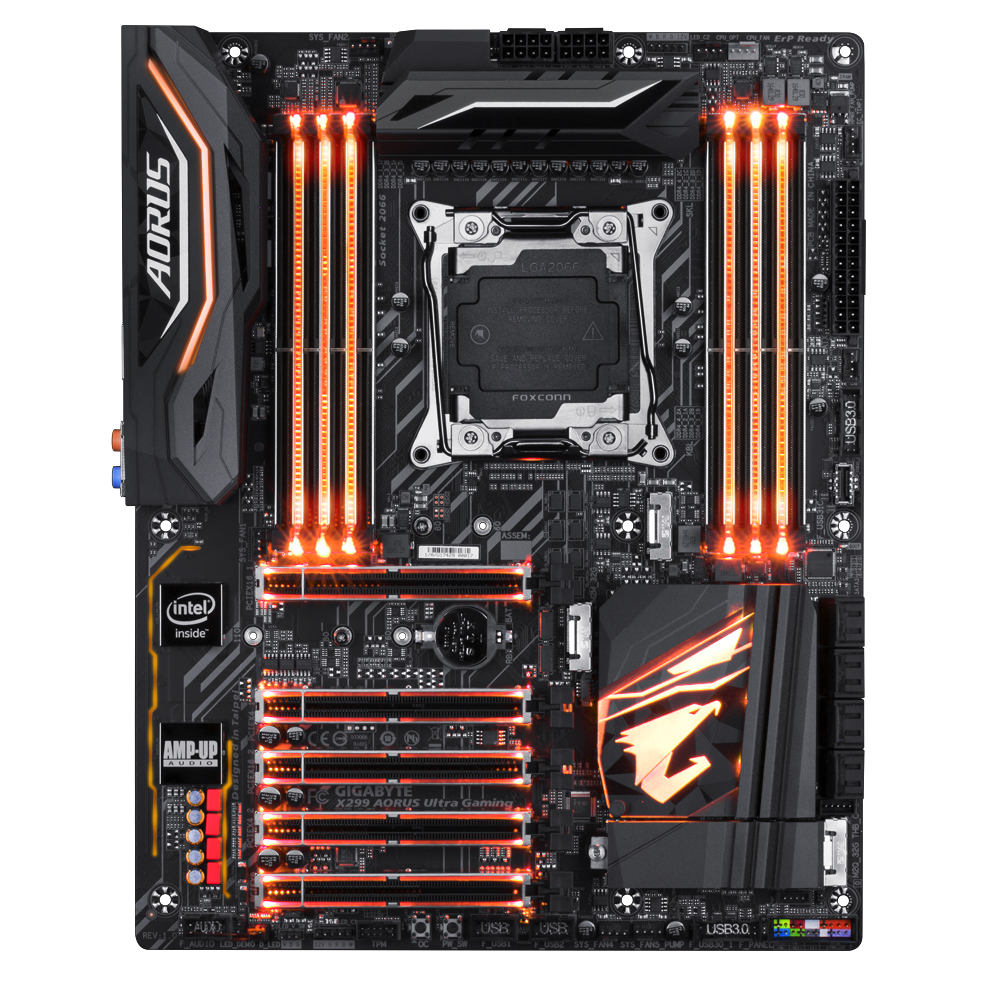 Gigabyte X299 AORUS Ultra Gaming, DDR4-SDRAM, DIMM, 3200,3300,3333,3400,3466,3600,3666,3733,3800,3866,4000,4133,4266,4333,4400 MHz, Dual, 2GB,4GB,8GB,16GB, 128 Go