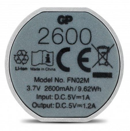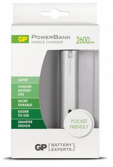 GP Batteries Portable PowerBank 405088, Argent, Smartphone, Lithium, 2600 mAh, USB, 3,7 V