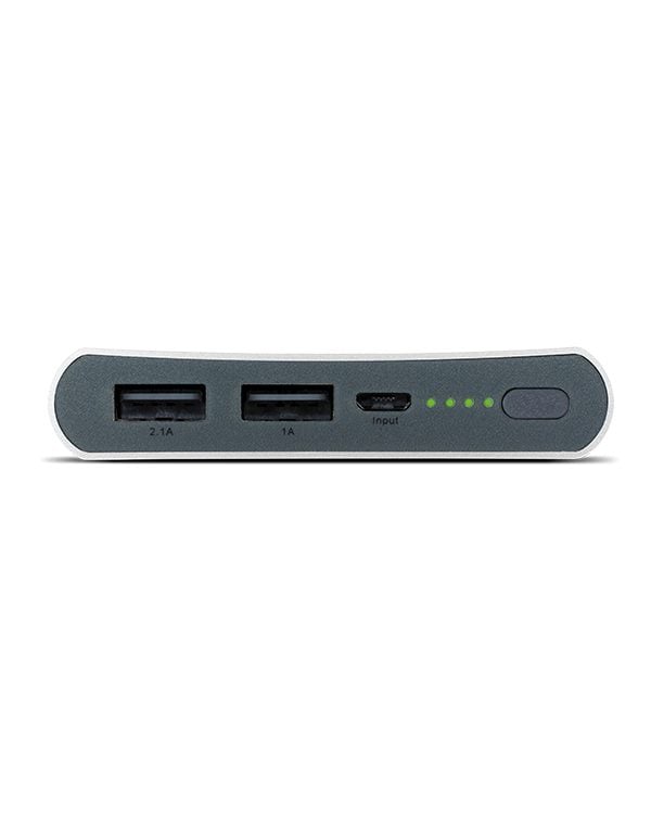| Autres | Nombre d'appareils connectés simultanément (max): 2, Couleur: Argent, Matériau du boîtier/corps: Aluminium, Voyants: Oui, Ports de sortie USB A: 2, Ports de sortie USB B: Micro-USB, Connecteur de chargement USB: Oui, Technologie batterie: Lithium Polymère (LiPo), Source de chargement: CC, USB, Tension des piles: 3,7 V, Tension d'entrée: 5 V, Courant d'entrée: 2 A, Courant de sortie de Port 1: 2,1 A, Courant de sortie de Port 2: 1 A, Dispositifs de protection électrique: Surcharge, Surchauffe, Surcharge, Court-circuit, Température d'opération: 5 - 40 °C, Câbles inclus: Micro-USB |