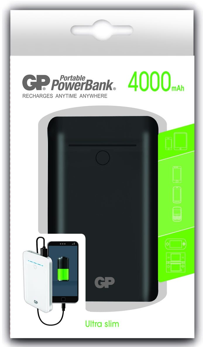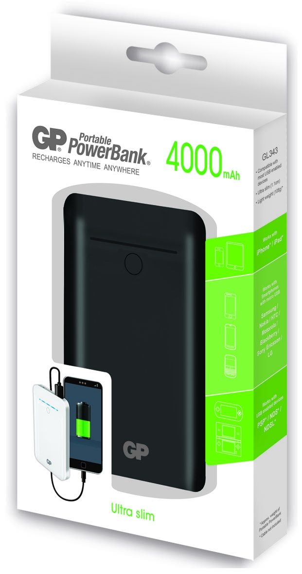 GP Batteries Portable PowerBank GL343, Noir, Téléphone portable, MP3, Consoles portables, Lithium Polymère (LiPo), 4000 mAh, USB, 3,7 V