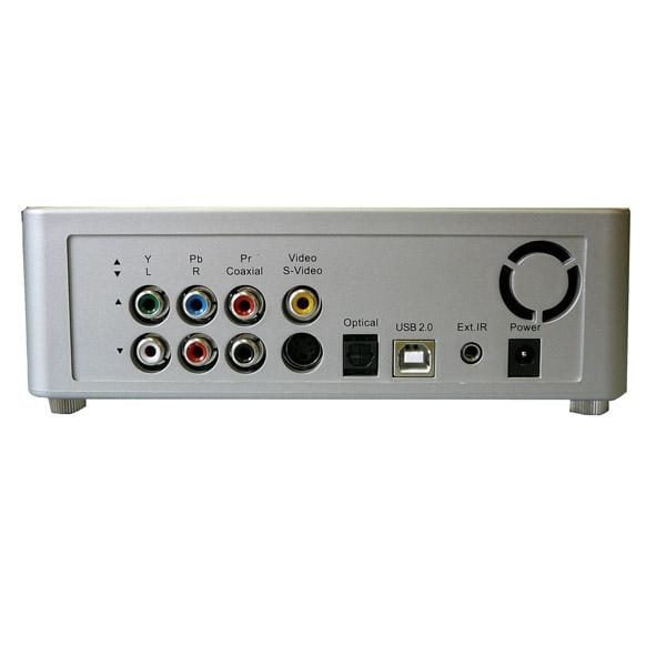 Un pavé multimédia capable de jouer un double rôle : disque dur externe lorsqu'il est accroché à un PC et jukebox audio/vidéo quand il se connecte à un téléviseur. Il n'est certes pas très élégant, mais a le mérite d'offrir un excellent rapport capacité/prix.