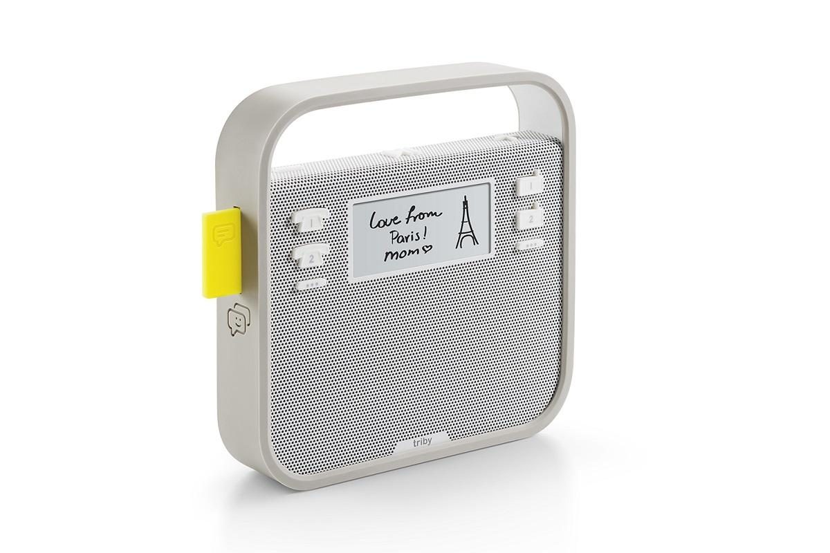 Le Triby d'Invoxia est un appareil connecté qui fait office d'enceinte Bluetooth, d'enceinte Wi-Fi (Spotify et radios), ainsi que de téléphone Internet. Son écran 2,9 pouces E-paper permet aussi d'afficher des messages. Bref, un petit appareil à tout faire.