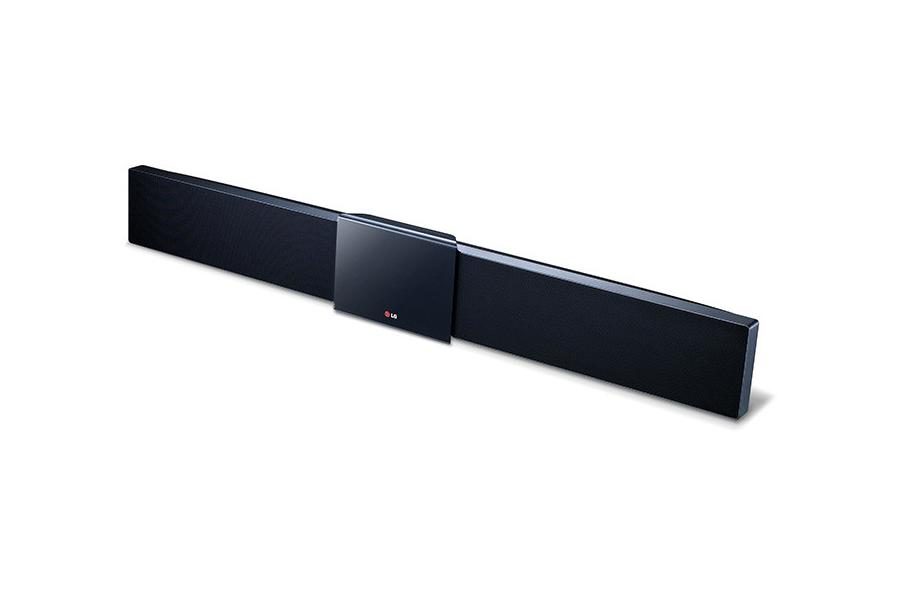 Dans moins de 8 cm d'épaisseur, cette barre de son LG abrite quatre HP (2 x 60 watts pour la stéréo et 2 x 30 watts pour la voie centrale). Elle est accompagnée d'un caisson de basses sans fil de 150 watts
