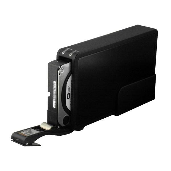 Le SataSwap de MacWay se distingue des autres disques durs externes grâce à boîtier un peu particulier. Il s'ouvre très facilement pour changer le disque qu'il contient, se transformant de fait en lecteur externe pour disque S-ATA.