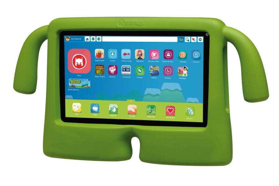 La Slidepad Kids par memup est une déclinaison de la Slidepad classique pour les enfants.Elle se distingue de ses concurrentes avant tout par son look, sa housse de protection étant munie de deux poignées verte.