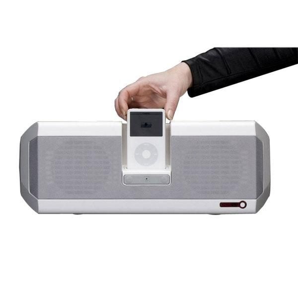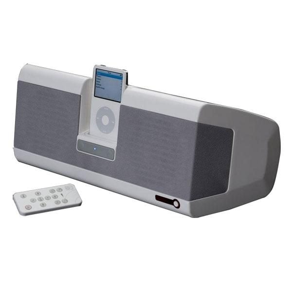 Ce système audio stéréo accueuille les iPod d'Apple pour en diffuser le contenu sur ses deux enceintes offrant au total 30 watts RMS.