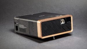 Conçu par Anker, le picoprojecteur portable Nebula Astro tient dans la main et se transporte très facilement. Il est livré avec une télécommande. Sous Android 7.1, il se connecte au réseau Wi-Fi et peut servir d'enceinte Bluetooth. Il donne facilement accès à YouTube et Netflix, ainsi qu'au mode miroir des smartphones iOS et Android. Le projecteur possède une luminosité de 100 lumens et une définition de 854 x 480 pixels, ce qui le réserve plutôt à un usage d'appoint dans une pièce peu lumineuse. Dommage qu'il soit un petit peu bruyant. Sa batterie offre 2 h 30 d'autonomie. L'appareil est disponible sur Amazon.