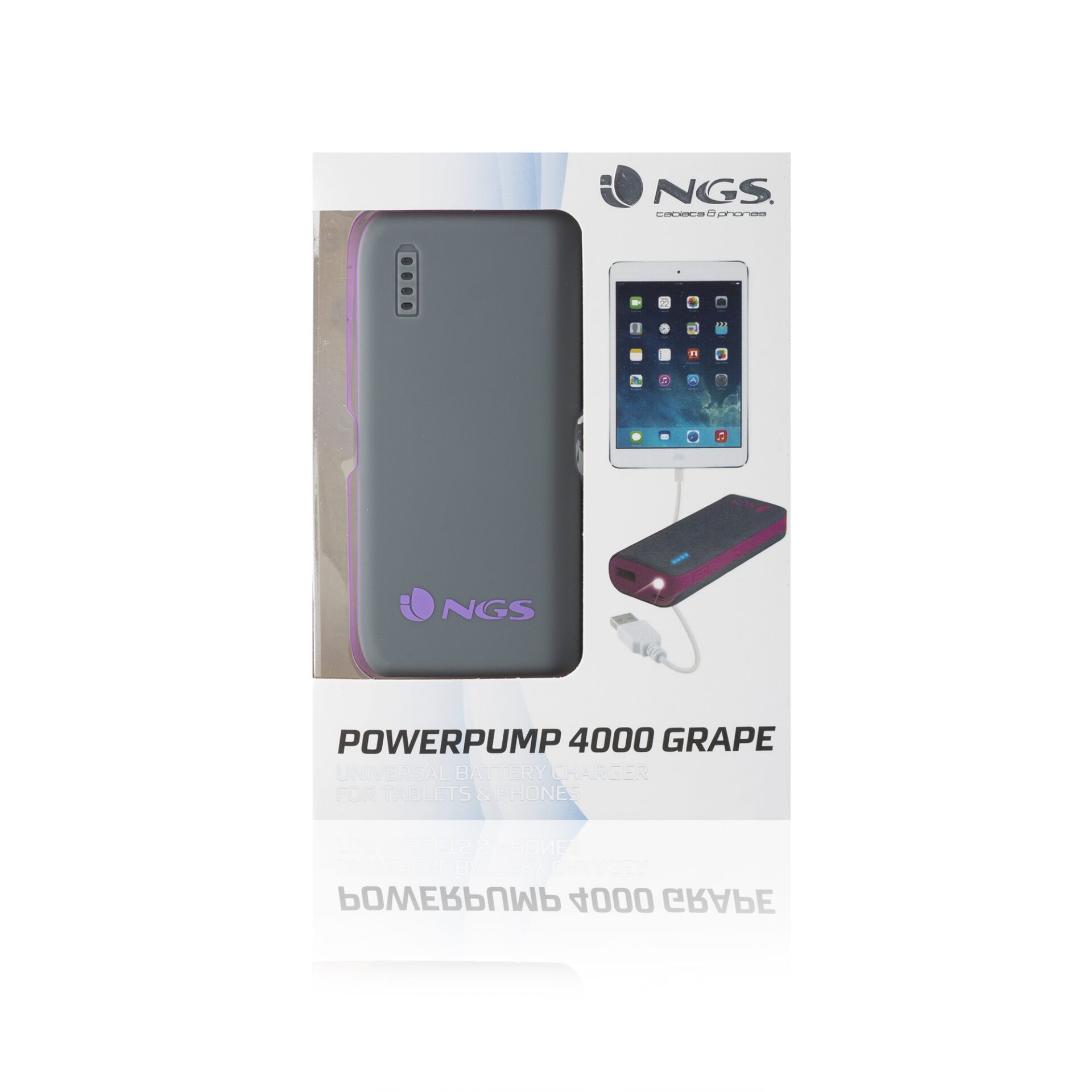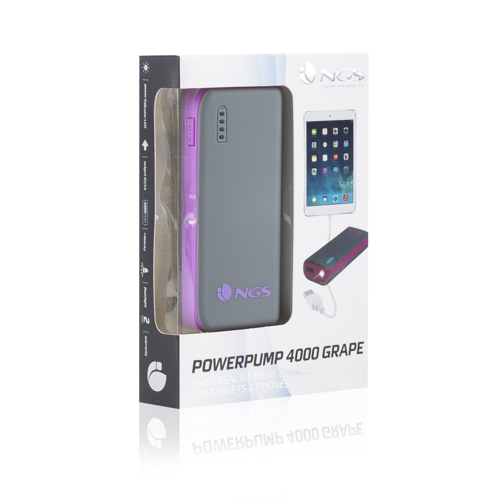 NGS PowerPump 4000 Grape, Gris, violet, Tablette, Caméra Numérique, MP3, Smartphone, MP4, Lithium-Ion (Li-Ion), 4000 mAh, USB, 5 V