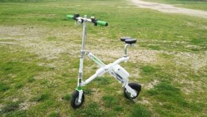La trottinette pèse 12,5 kg, ce qui la place dans la moyenne des modèles électriques du marché. Un poids soutenable pour un adulte, mais qui la rend difficilement utilisable pour les plus jeunes, et les petits gabarits. Il est en effet fréquent d’avoir à porter ces engins : pour les emporter dans son appartement, au bureau, ou généralement dans n’importe quel endroit dont on ne veut pas salir le sol. Pour la transporter de façon plus commode, il est d’ailleurs recommandé de la plier. Pour ce faire, Xiaomi a prévu une charnière située à la base de l’axe vertical, très facile à manipuler.