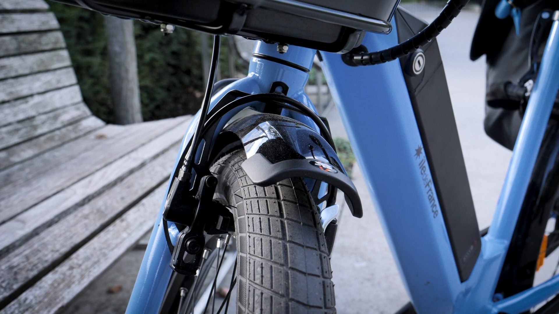 Les allures de Vélib’ du Véligo trahissent une volonté de la région Ile-de-France de proposer un vélo solide, qui pourra surtout être reloué après le bail du premier usager. Ainsi, l’ensemble est plutôt bourru, imposant et d’un bleu un peu curieux qui ne rend pas honneur aux qualités intrinsèques du cycle. Les soudures sont épaisses, bien apparentes, les câbles nombreux et pas spécialement bien dissimulés… Bref, c’est un vélo qui ne donne pas envie d’être volé.