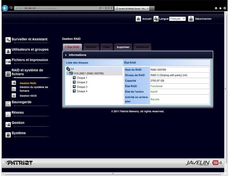 Le serveur 4 baies de Patriot Memory assure de bonnes performances en Raid 5 et 10, mais ses fonctions multimédias sont à revoir.