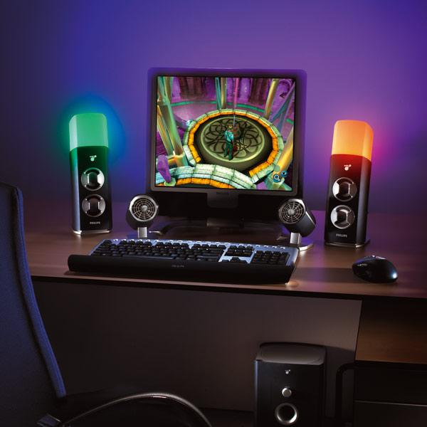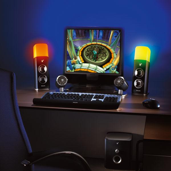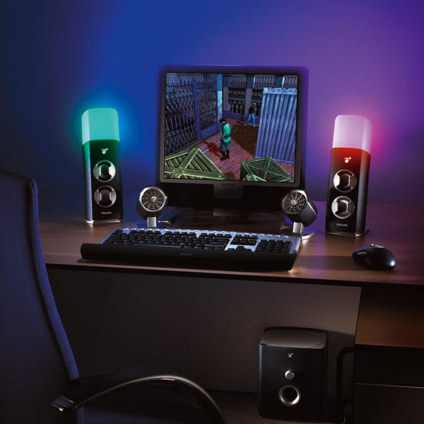 Bien plus qu'un système audio 2.1, le Kit Premium intègre, en plus des baffles et du caisson de basses, deux ventilateurs, un vibreur et des effets lumineux pour immerger le joueur dans l'ambiance du jeu.
