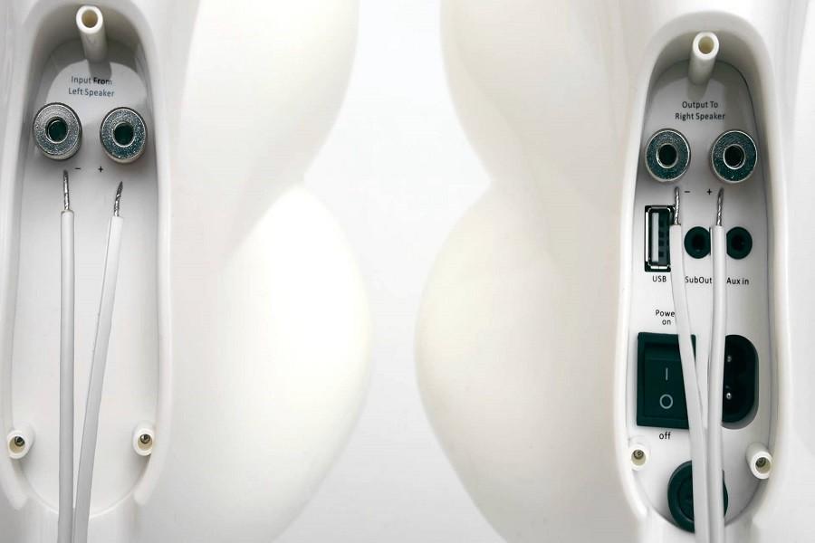 Les deux enceintes SmallPod Air de Podspeakers communiquent sans fil avec les iPod, iPhone et iPad dotés de la technologie AirPlay. Elles fonctionnent sur secteur et délivre une puissance théorique de 2 x 45 Watts. L'ensemble est livré avec une télécommande.