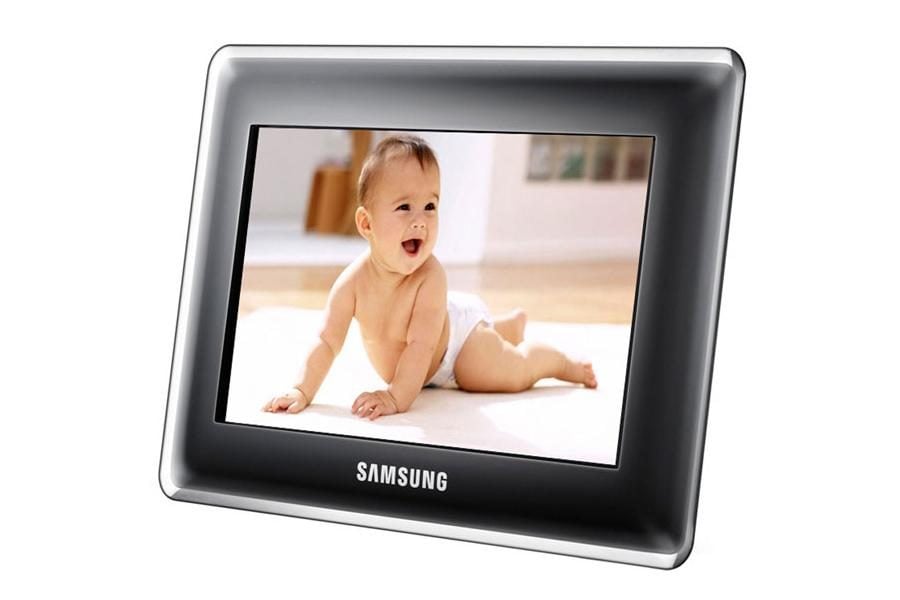 Ce cadre photo numérique SPF-87H de Samsung est bon marché, design, embarque une mémoire interne d'un gigaoctet et est doté d'un écran de 8 pouces.