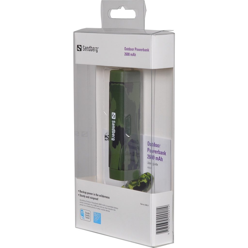Sandberg Outdoor Powerbank 2600 mAh, Camouflage, Téléphone portable, Smartphone, Micro-USB, Lithium-Ion (Li-Ion), 2600 mAh, USB