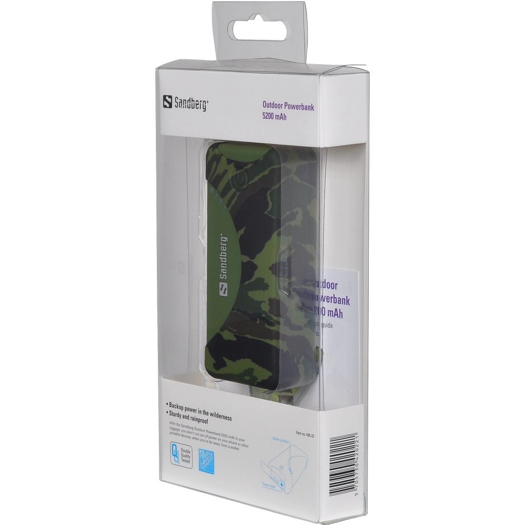 Sandberg Outdoor Powerbank 5200 mAh, Camouflage, Smartphone, Mini-USB, 5200 mAh, USB, 45 mm