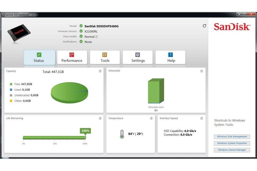 | Logiciels fournis | SSD Dashboard (à télécharger) |