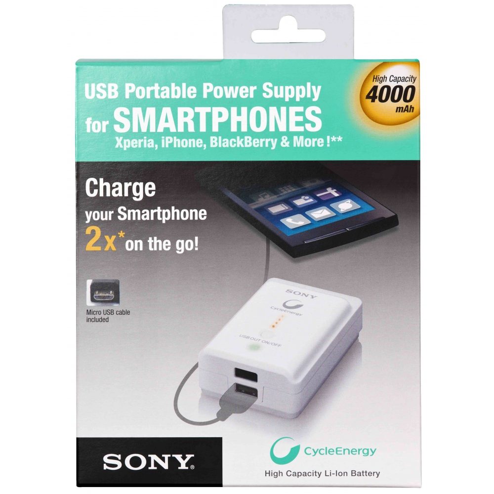 Sony CP-A2LS, Blanc, Téléphone portable, Lithium-Ion (Li-Ion), 4000 mAh, 6 h, 100 - 240