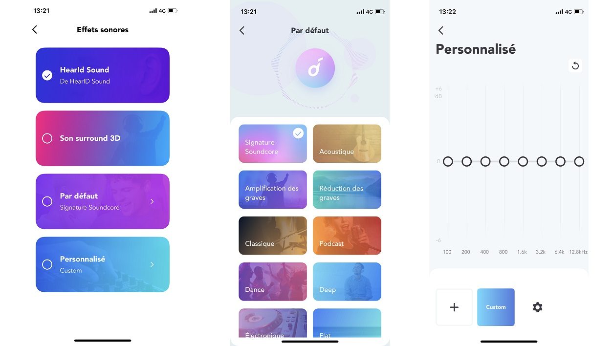 Soundcore propose une application gratuite pour iOS et Android qui permet de contrôler de nombreux paramètres et dispose d'un égaliseur complet. Vous pouvez personnaliser les commandes tactiles, mais aussi effectuer les tests d'audition et de réduction de bruit.