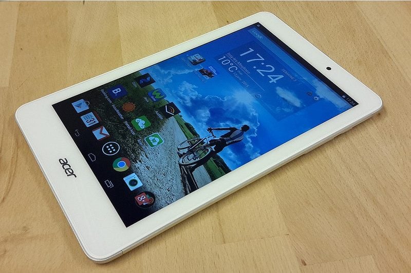 Acer renouvelle sa gamme de tablettes 8 pouces avec l’Iconia Tab 8, que l’on trouve aussi sous le nom A1-840 sur certains sites marchands. Dotée de la dernière mouture 4.4 d’Android, cette tablette est proposée avec 1 Go de mémoire vive et un écran de 1280 x 800 pixels (environ 150 euros) mais aussi dans une version A1-840FHD qui embarque 2 Go de mémoire vive et surtout un écran Full HD (1920 x 1200 pixels). Nous avons testée cette dernière, vendue environ 200 euros.