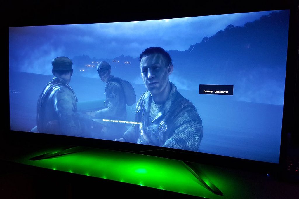 Sur une telle définition de 3440 x 1440 pixels, il est difficile d’atteindre du 100 ips constant sur un jeu moderne, qui sont les conditions idéales pour activer l’ULMB. La techno G-Sync prend alors tout son sens pour l’impression de fluidité… Mais la netteté parfaite de l’ULMB nous manquait ! Quant au retard d’affichage, il n’handicapera pas le joueur : nous avons mesuré 13 ms en Full HD sur l’entrée HDMI.