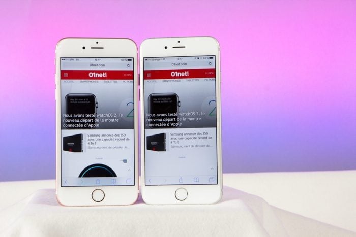 Et comme la sensation perdure sur un moniteur calibré, on ne peut la mettre totalement sur le compte des dalles de ces différents smartphones. Glissons d’ailleurs un mot sur les écrans, en relation directe avec la photographie, forcément. Il est en effet plus agréable de cadrer une photo avec les concurrents de l’iPhone. C’est le cas avec le LG G4, par exemple, dont la dalle est splendide… Si l’écran Retina est toujours aussi confortable et agréable pour lire ou surfer, avec un taux de contraste mesuré de 1532:1 et une bonne luminosité à 582 cd/m2, il affiche une définition et une densité de pixels inférieures à celle des concurrents avec lesquels nous les avons comparés.