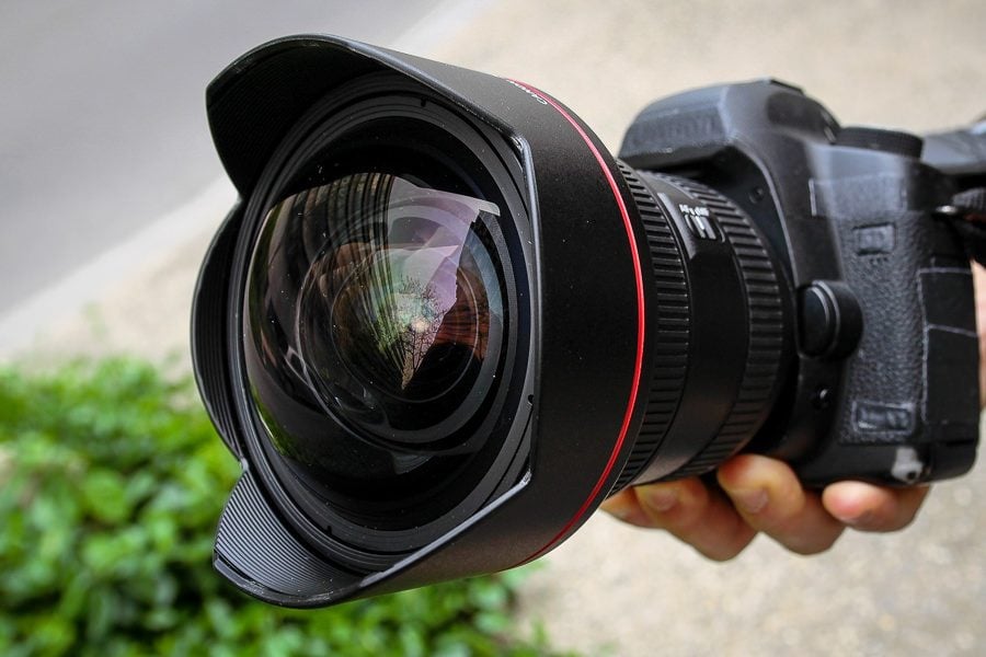 Son gros globe de verre vous le laisse deviner : le Canon EF 11-24 mm f/4L USM est un beau et gros bébé, pas une optique de poche. Sa lentille frontale sphérique est un vrai casse-tête à protéger et son gabarit nécessite un boîtier plein format sérieux.