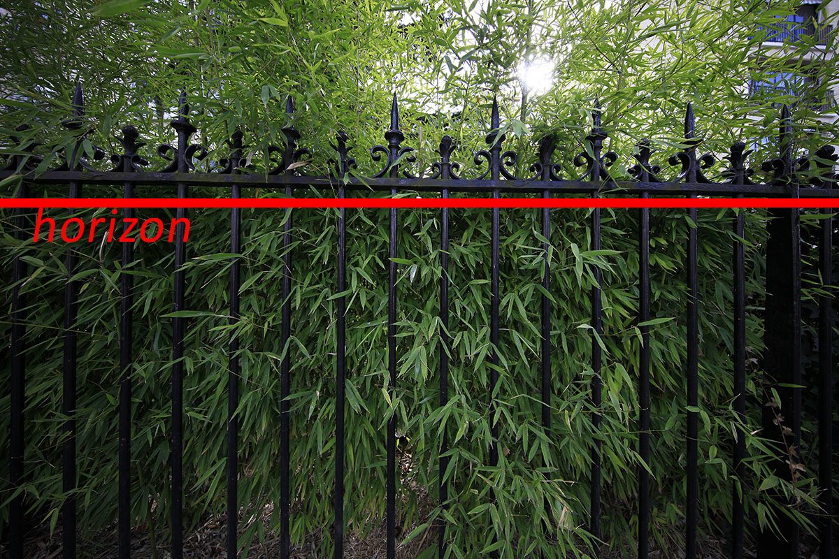 Ce dernier devra aussi faire très attention à l’horizon : comme le montre la photo de la grille ci-dessus réalisée à main levée, la moindre inclinaison du boîtier rendra les photos bancales. Pour les shoots professionnels ou tout du moins sérieux, un trépied à bulle sera votre ami.