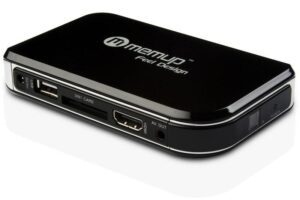 Le Storydisk de Storex a un certain look, certes, avec son boîtier ultraplat tout en courbes. En façade, aux côtés d’un panneau LCD, figurent un port USB Host et un lecteur de cartes SD. A l’arrière, se trouvent des sorties HDMI, Peritel, composite et coaxiale numérique. Sans oublier le port USB pour se connecter à son PC. A l’intérieur, un disque dur offrant une capacité de stockage de 1 To. Rien de bien original donc du côté matériel!